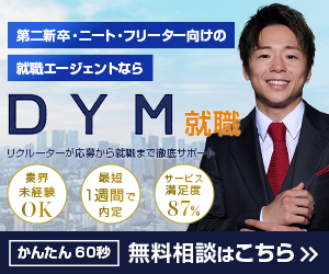 DYM就職は20代に人気がある就職・転職エージェント。経歴・学歴は関係なく、内面を見て採用してくれる企業の求人が多いと評判。